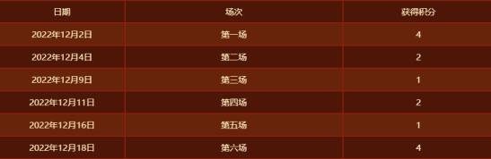 横扫千军新区将会在12月2日-12月18日开启“沙巴克积分赛”活动,在活动期间内,每周四、周日攻占沙巴克胜利的行会将获得沙巴克积分,具体对应日期和积分数量如下: